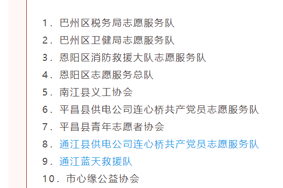 通江蓝天救援队伍肩负着在危难时刻拯救生命、保护财产和维护社会稳定的重要使命。希望队伍始终保持高度的责任感和使命感,不断提升专业技能和应急处置能力,最高的效率投入救援行动。希望各位队友在保证自身安全的情况下,尽最大努力减少人民群众的伤亡和财产损失。